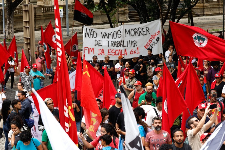Quase não foram vistas faixas,bandeiras e camisetas de centrais sindicais na manifestação na Avenida Paulista,em São Paulo,no último dia 15. Este e outros atos realizados em capitais em favor da proposta de emenda à Constituição (PEC) que prevê o fim da escala 6x1 (seis dias de trabalho e um de folga) tiveram lideranças diferentes.