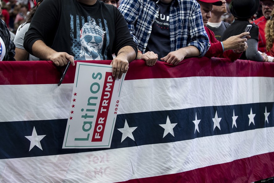 Apoiador de Donald Trump segura cartaz de apoio dos latinos ao então candidato republicano à Presidência — Foto: Anna Moneymaker/The New York Times