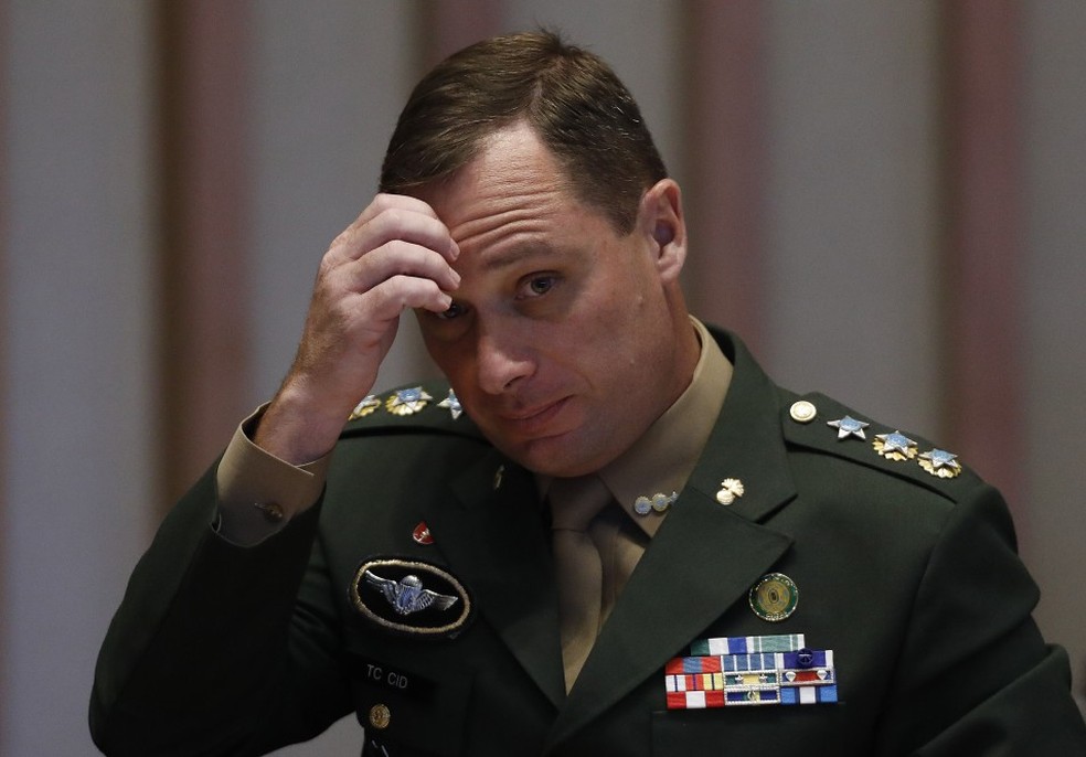 O tenente-coronel Mauro Cid,durante depoimento em CPI do Distrito Federal em 2023 — Foto: Cristiano Mariz/Agência O Globo/24-08-2023