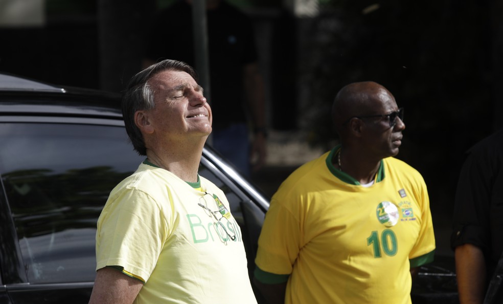 Ailton Barros,ao fundo,acompanhou votação de Bolsonaro no segundo turno de 2022,na Vila Militar,no Rio — Foto: Gabriel de Paiva/Agência O Globo/30-10-2022