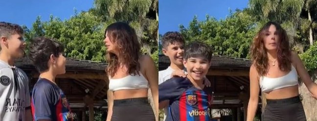 Isis Valverde e os enteados,filhos do namorado,Marcus Buaiz,com Wanessa Camargo. A atriz comemorou o aniversário do mais velho enquanto a cantora estava confinada para o "BBB 24" — Foto: Reprodução: Internet