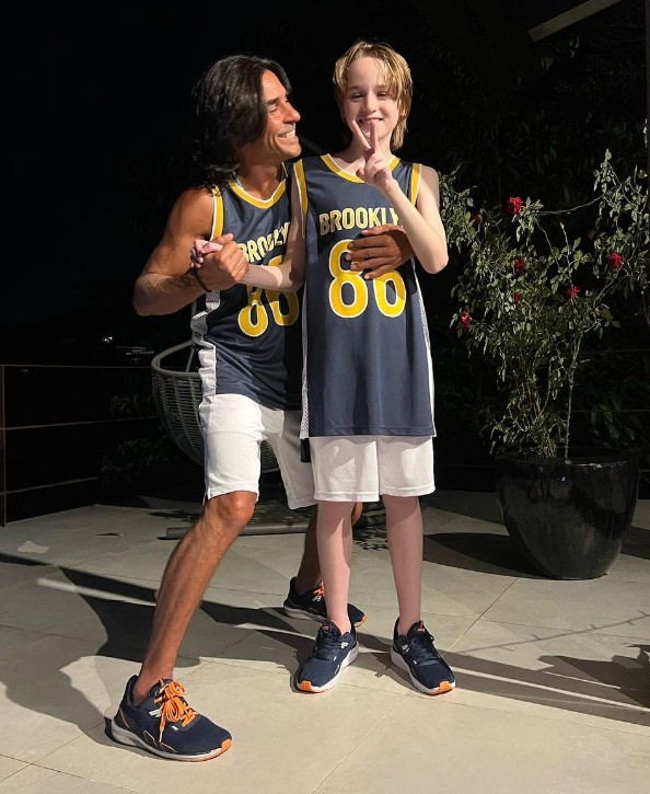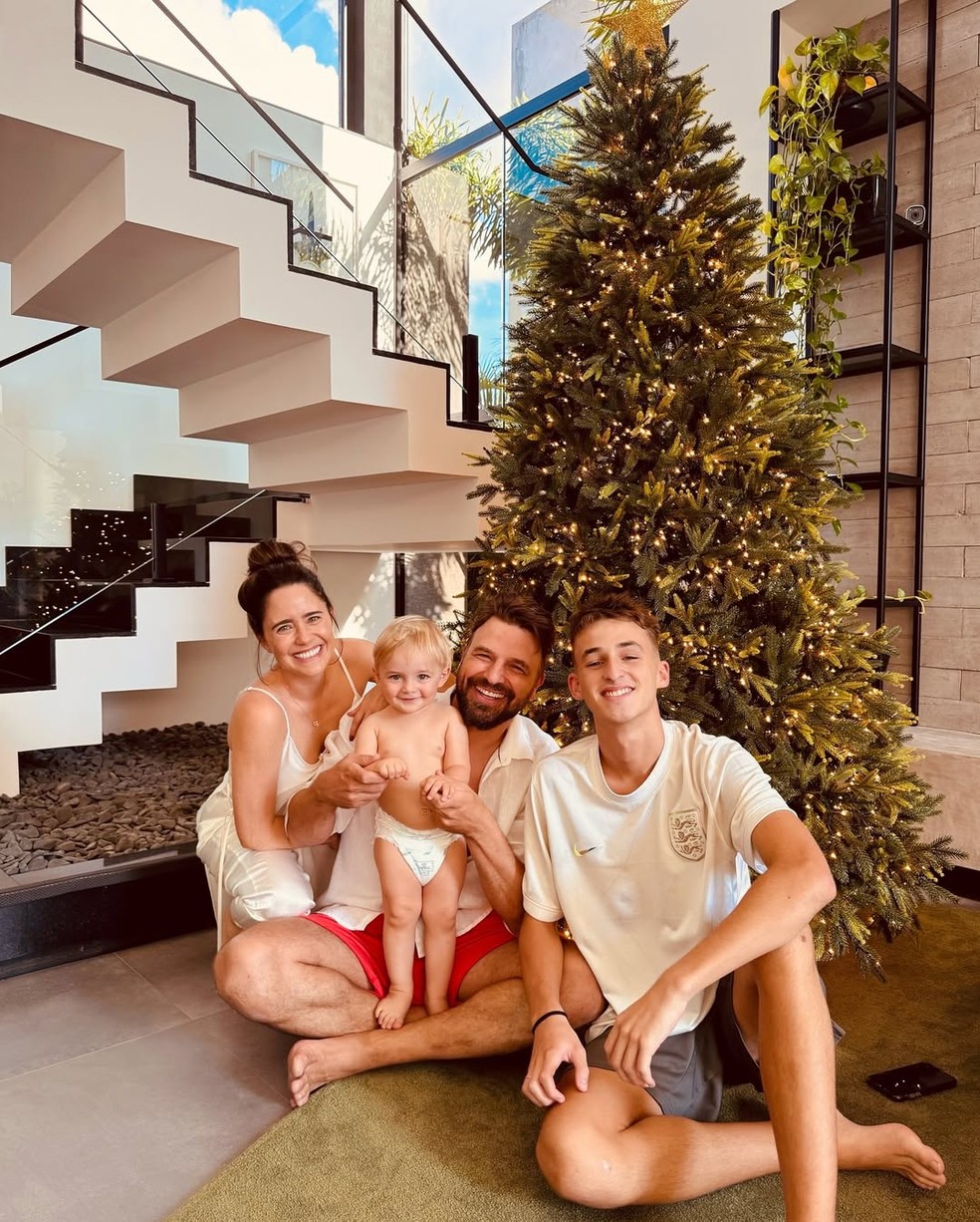 André Gonçalves se dá muito bem com Guy,filho de sua mulher,Danielle Winits,com Jonatas Faro — Foto: Reprodução/Instagram