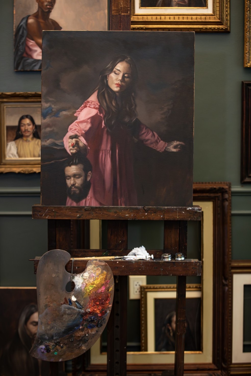 Assim como Judite decapitou um general assírio para proteger sua cidade na história do Antigo Testamento,a pintora mostra,na releitura,o ímpeto de defender as próprias convicções e seus semelhantes. “É uma narrativa que fala sobre uma mudança de poder,uma mulher libertando o povo dela da presença e da força masculina de um ditador.”
