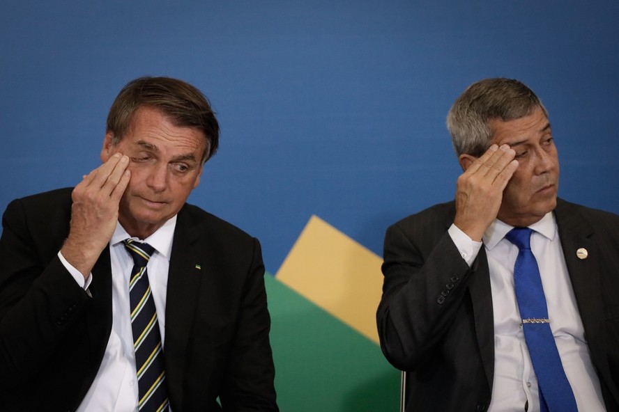 O ex-presidente Jair Bolsonaro e seu ex-ministro Walter Braga Netto — Foto: Pablo Jacob/Agência O Globo/01-10-2021