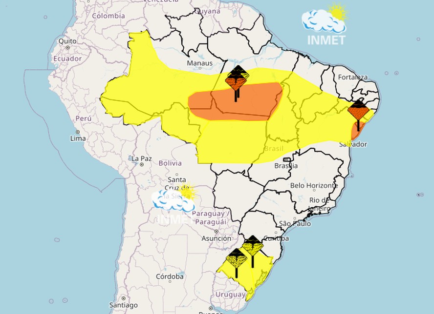 Alertas do Inmet para esta quarta-feira — Foto: Inmet