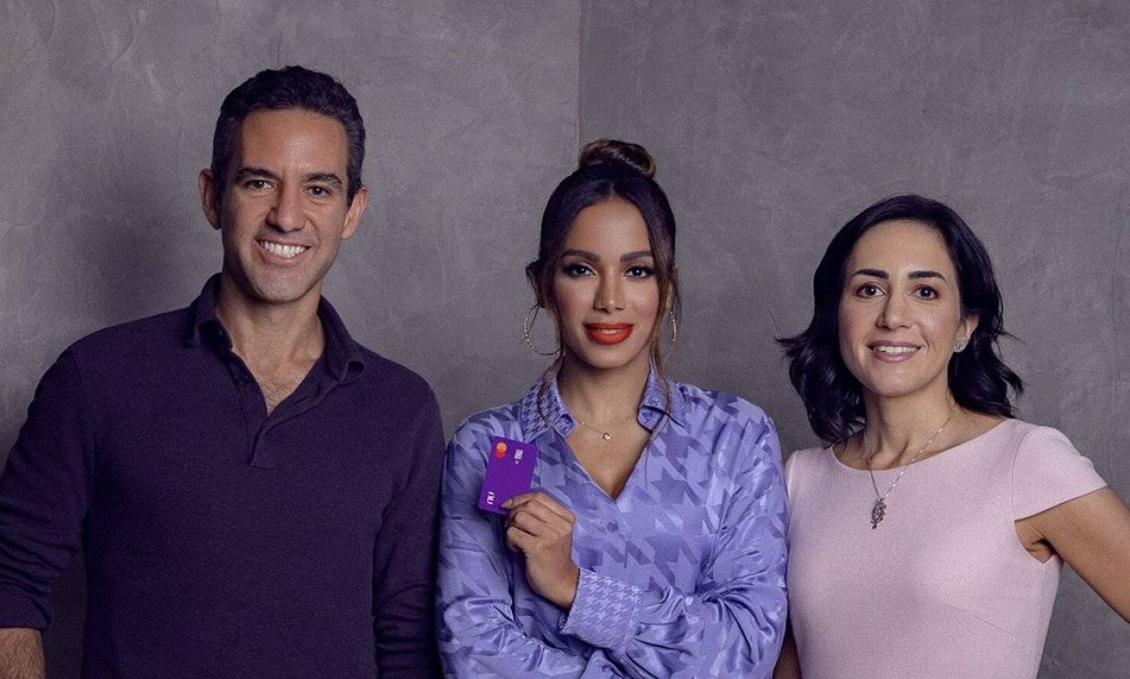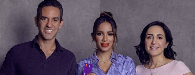 Anitta entre David Vélez e Cristina Junqueira,cofundadores do Nubank. Cantora tem cadeira no Conselho de Administração do Nubank — Foto: Divulgação