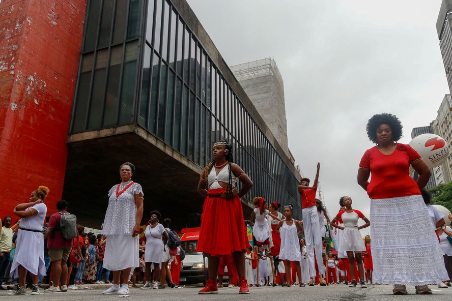 Ato contra o racismo,em São Paulo,no Dia da Consciência Negra — Foto: Miguel Schincariol/AFP