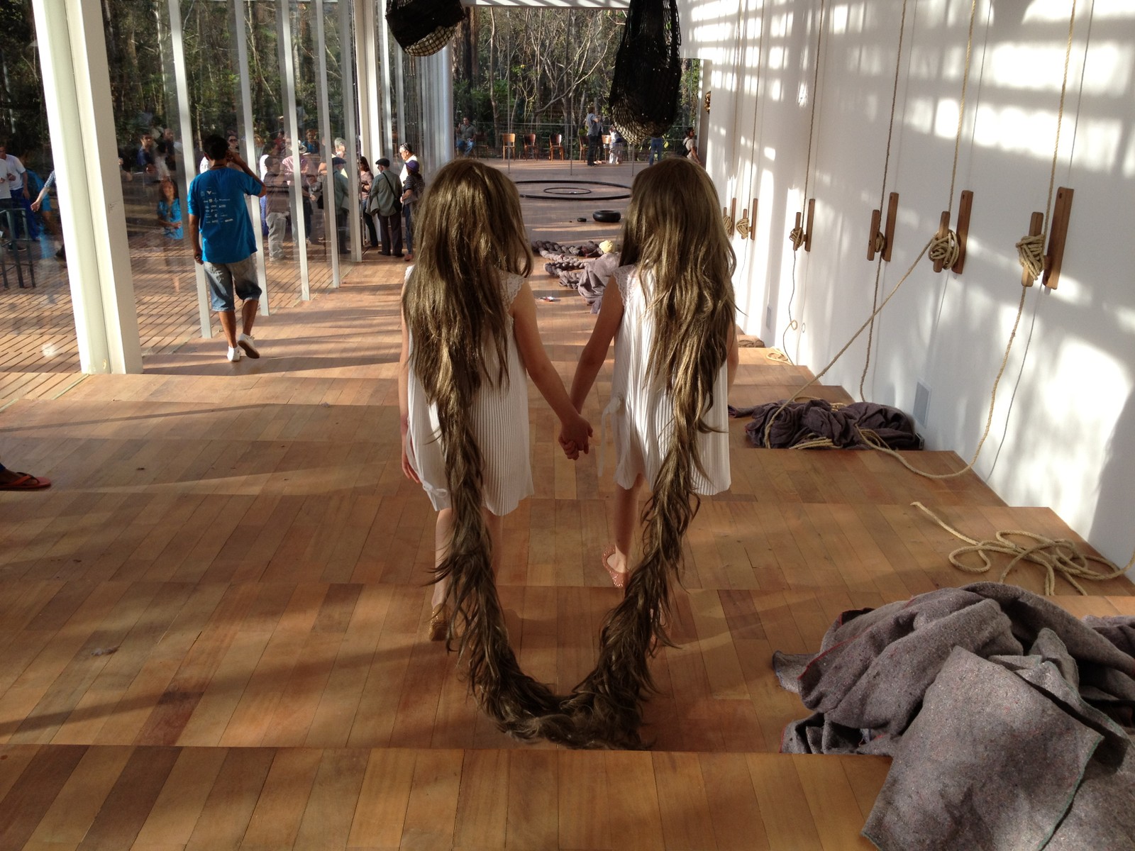 Performance 'Xifópagas capilares',na Galeria Psicoativa,de Tunga,em Inhotim — Foto: Divulgação