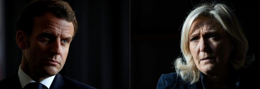O presidente da França,Emmanuel Macron,e a líder da extrema direita,Marine Le Pen — Foto: AFP