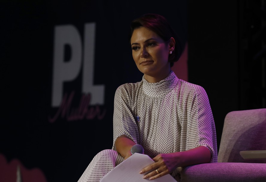 A ex-primeira-dama Michelle Bolsonaro durante evento do PL em março de 2023 — Foto: Cristiano Mariz/O Globo