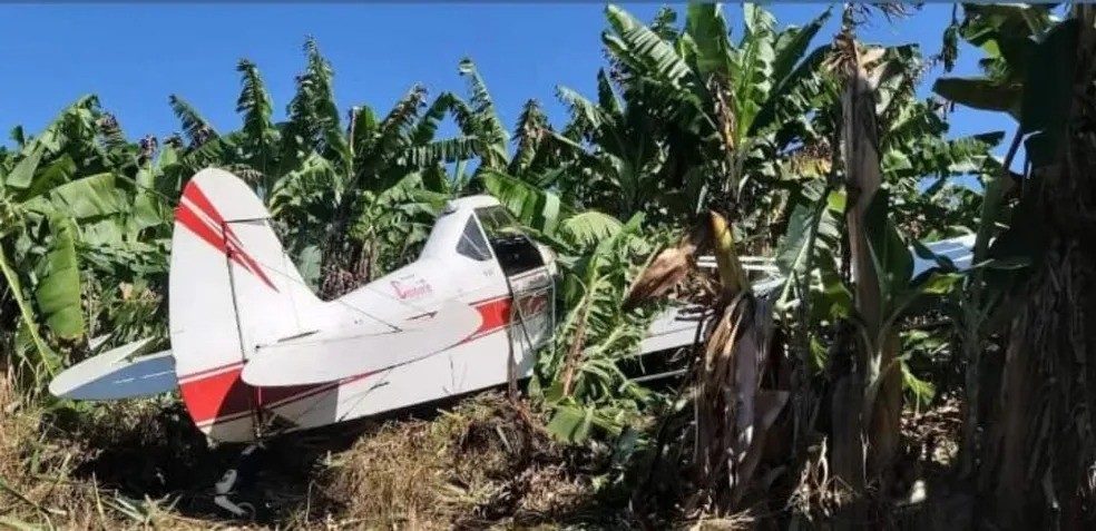 Avião cai em bananal na cidade catarinense de Corupá — Foto: Polícia Militar/Divulgação