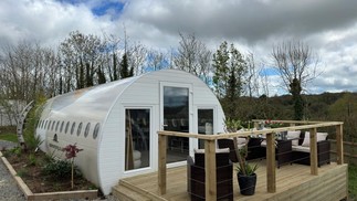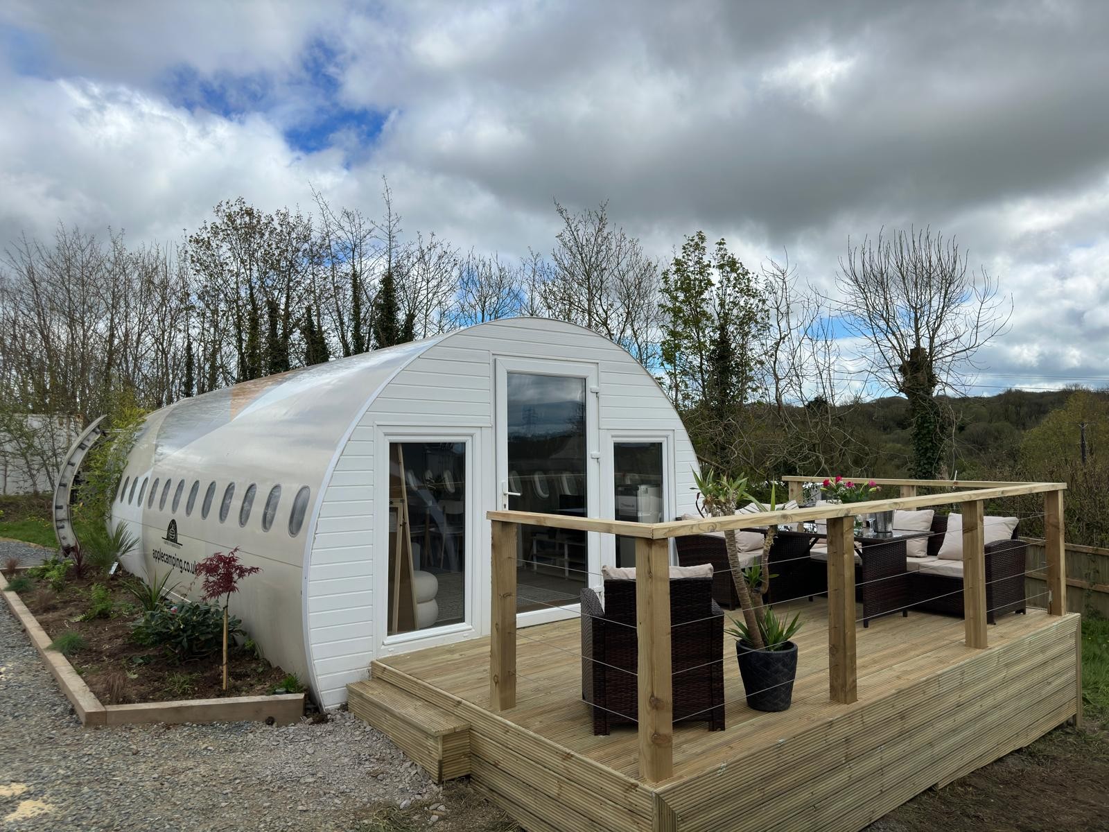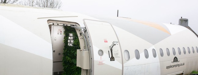 As portas do antigo A320 da Etihad ainda funcionam: avião desativado virou opção de hospedagem em camping no País de Gales — Foto: Reprodução / Apple Camping