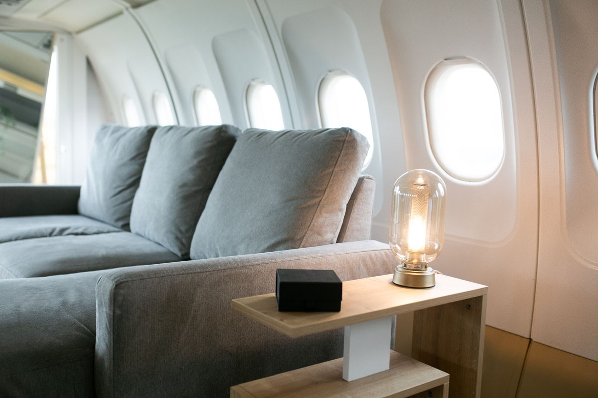 O interior do Apple Airbus,um antigo avião desativado que virou opção de hospedagem por temporada no País de Gales,Reino Unido — Foto: Reprodução / Apple Camping