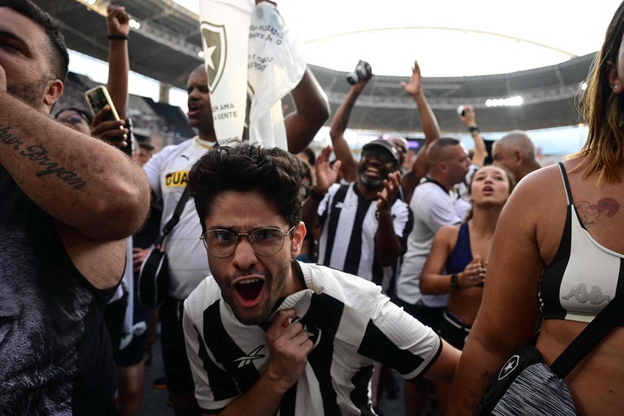 Torcedores comemoram o segundo gol do Botafogo no Nilton Santos — Foto: Pablo PORCIUNCULA / AFP