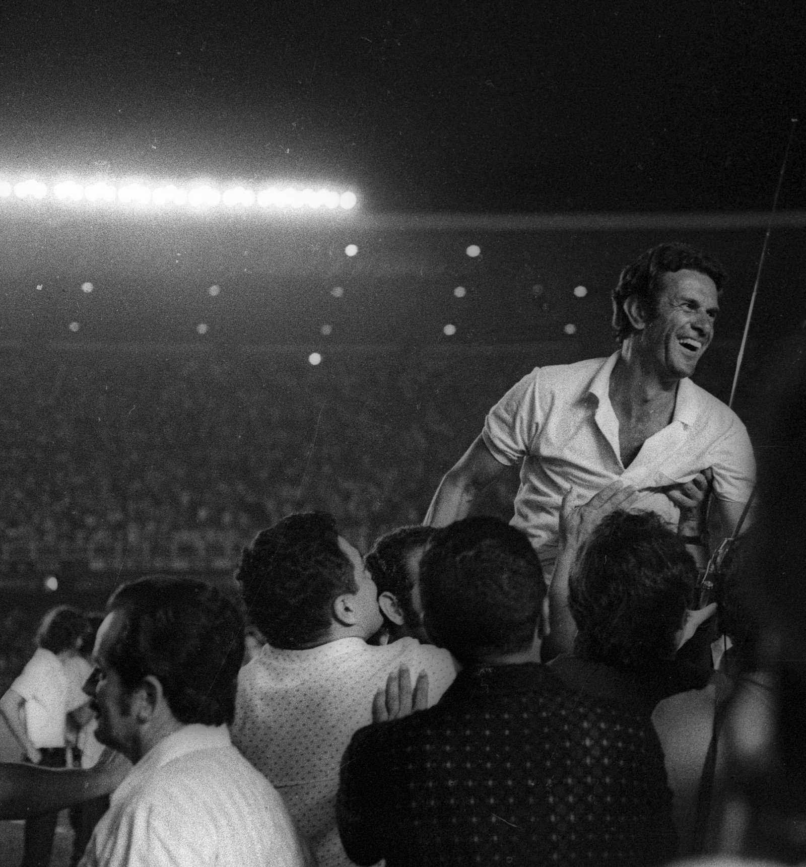 Após a vitória do Atlético,o técnico Telê Santana é carregado pela torcida — Foto: Arquivo / Agência O Globo