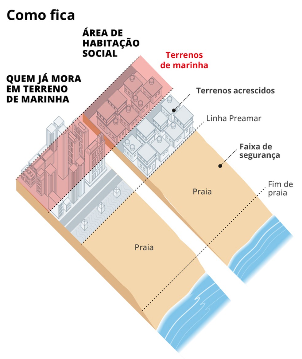 Segundo a PEC,moradores de áreas de habitação social terão a transferência dos terrenos de forma gratuita,mas não há detalhes do processo. Na SPU,não há informações precisas de quantas áreas de especial interesse social ficam em terrenos de marinha no Brasil. Por isso,críticos do projeto alertam para os riscos de insegurança jurídica e de remoção de moradores de favela ou de comunidades ribeirinhas tradicionais.