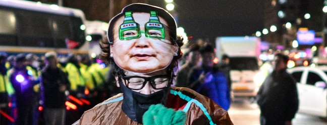 Sul-coreanos protestam em frente à Assembleia Nacional do país — Foto: Anthony WALLACE / AFP