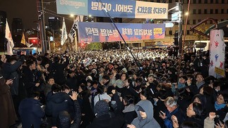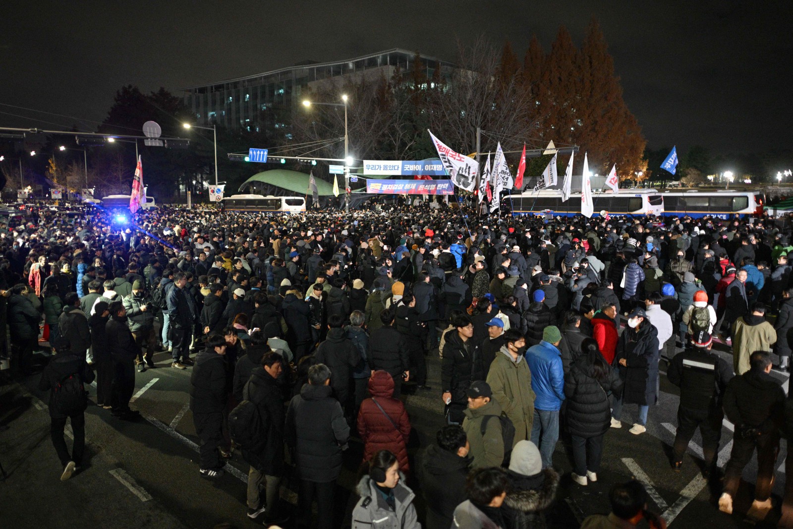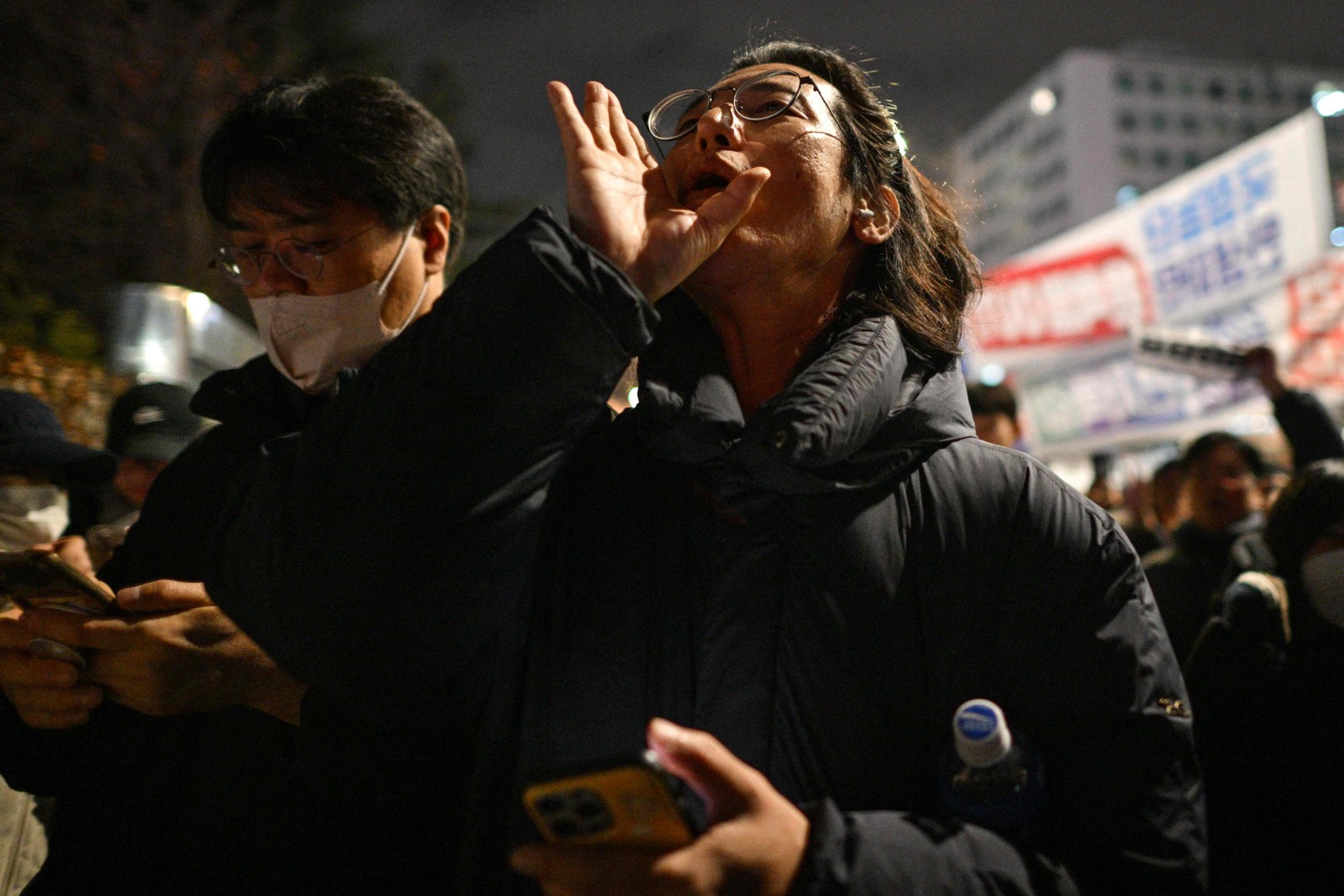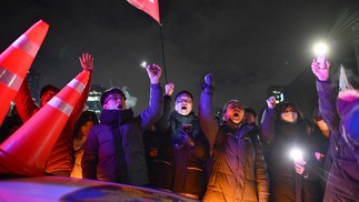 Após o anúncio,centenas de pessoas foram ao Parlamento do país,na capital Seul — Foto: Anthony WALLACE / AFP