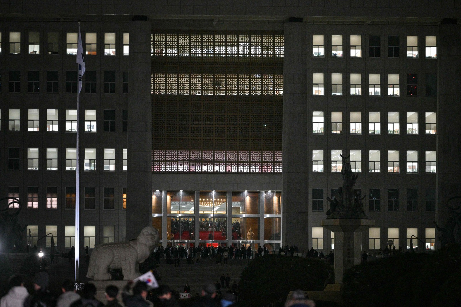 Sul-coreanos se reúnem na Assembleia Nacional — Foto: Anthony WALLACE / AFP