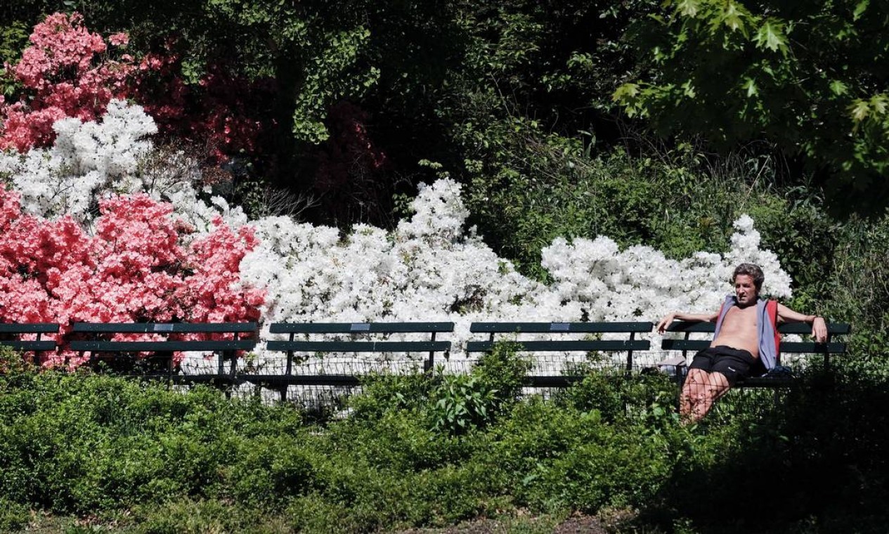 Central Park,em Nova York,durante a primavera. O local é um oásia de tranquilidade no ambiente urbano da cidade e um dos pontos turísticos mais visitados da Big Apple — Foto: SPENCER PLATT / AFP