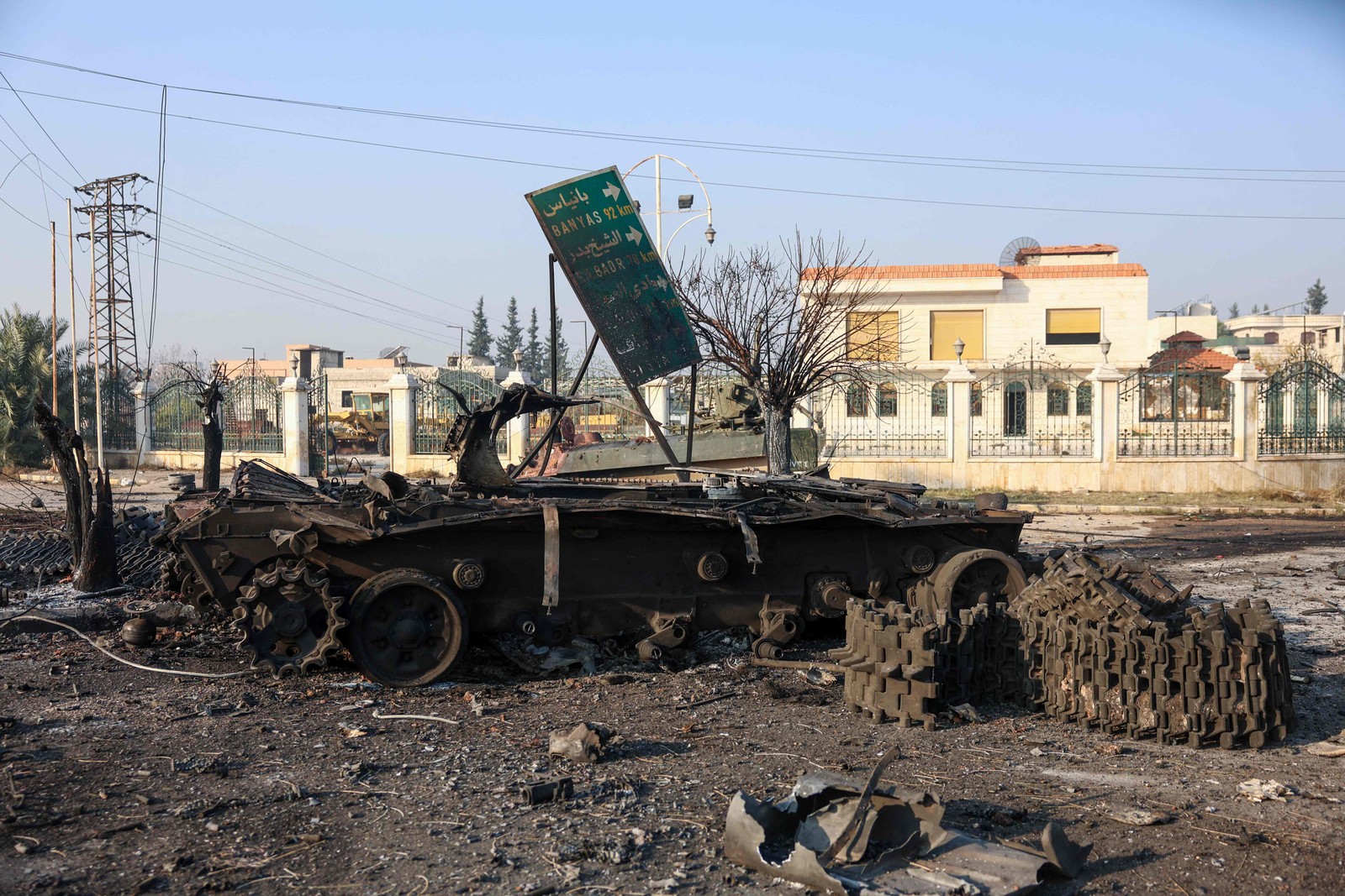 Tanque do exército incendiado por forças opositoras ao governo sírio — Foto: Mohammed AL-RIFAI / AFP