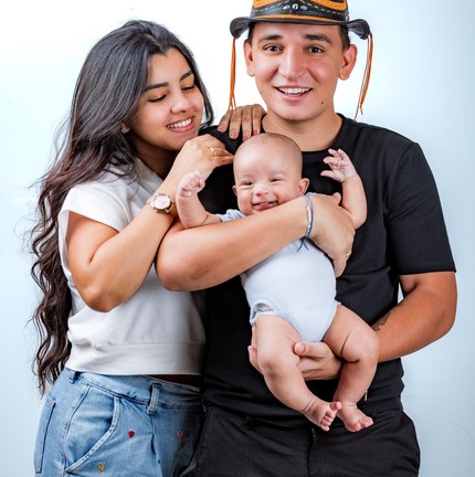 O cantor João Gomes posa com a mulher Ary Mirelle e o filho Jorge — Foto: Divulgação