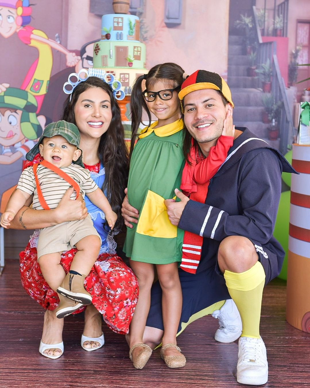 Jheny Santucci e Arthur Aguiar na comemoração dos 9 meses do filho Gabriel. A festa temática de “mesversário” foi inspirada em “Chaves” e contou também com a presença de Sophia,filha do ator com Maíra Cardi — Foto: Reprodução/Instagram