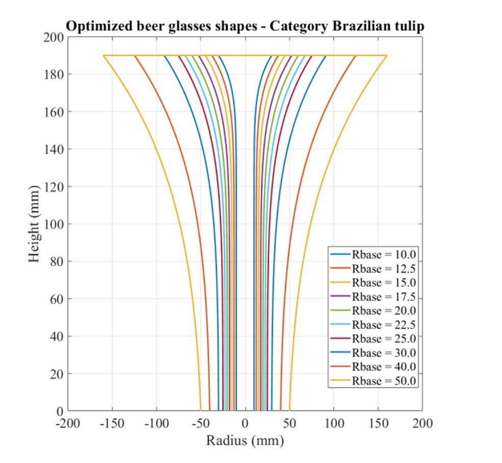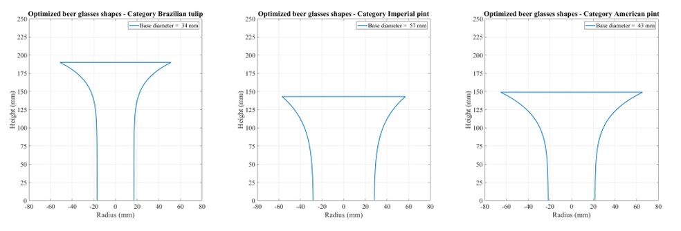 Para Pellegrini,isso significa identificar quais proporções garantem que o líquido mantenha-se frio por mais tempo. O estudo,escrito em um tom bem-humorado,mostrou que o formato não é muito distante dos mais usados pelo mundo,com uma base pequena que se alarga conforme aproxima-se do topo,tal como uma corneta. "Algo como uma tulipa com a boca larga",explica Claudio.