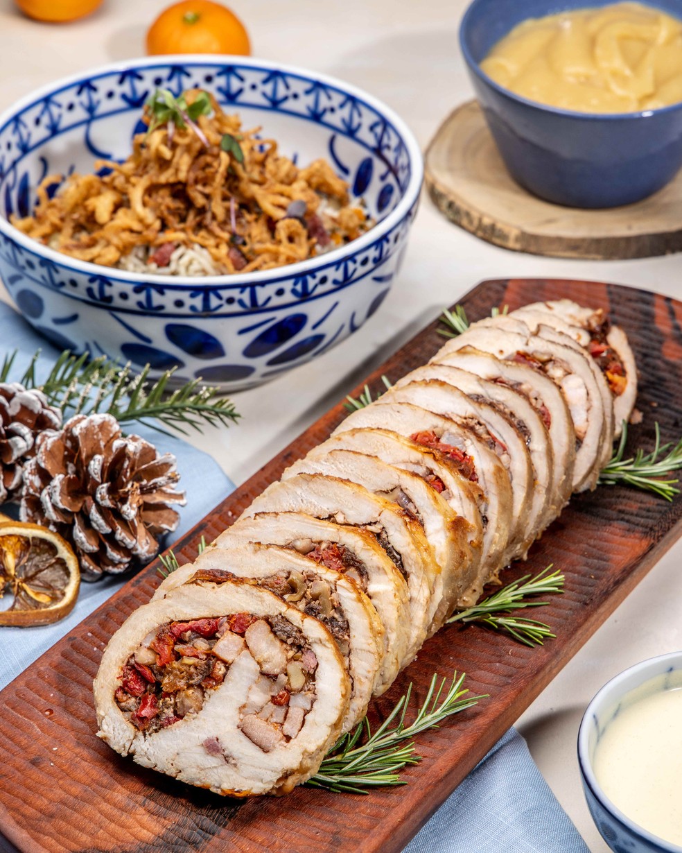 Lombo suíno recheado com frutas secas e nozes do Gula Gula — Foto: Tomás Rangel/Divulgação