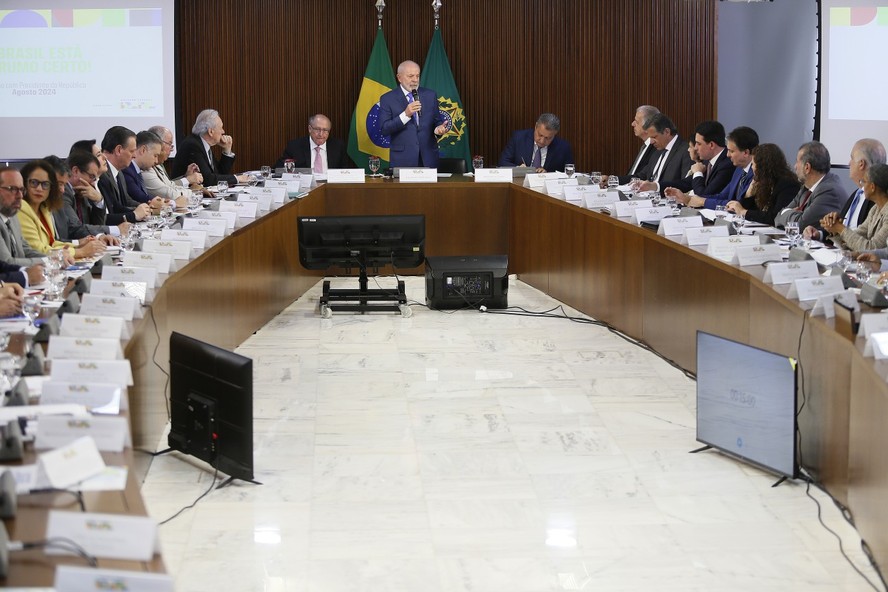 O presidente Lula durante reunião ministerial em agosto,no Palácio do Planalto — Foto: Cristiano Mariz/Agência O Globo