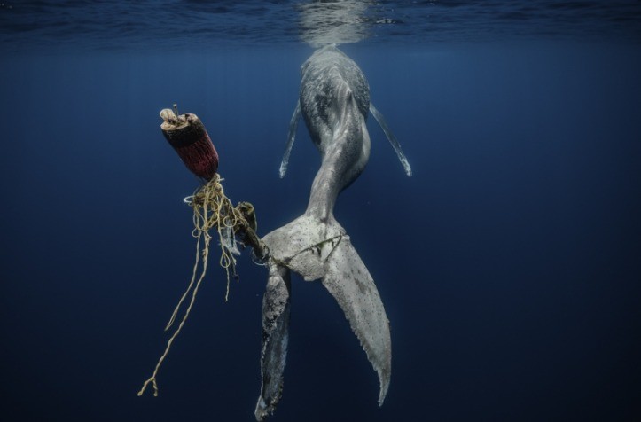 Já em terceiro lugar ficou a imagem “Sem Esperança”,do espanhol Alvaro Herrero López Beltrán. A foto mostra uma baleia jubarte presa em uma bóia,incapaz de se mover e “enfrentando uma morte lenta e dolorosa” — Foto: Alvaro Herrero López Beltrán/Siena International Photo Awards