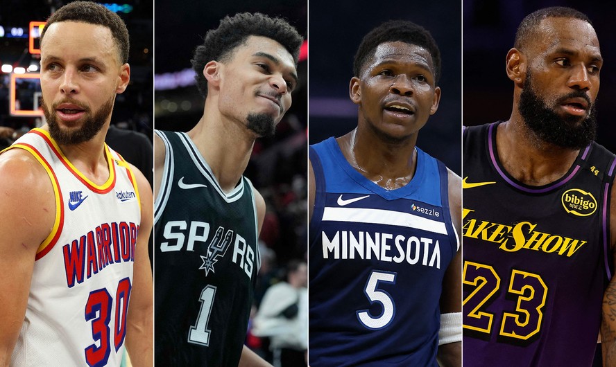 Curry,Wembanyama,Ant e LeBron estarão em quadra hoje — Foto: David Berding/Getty Images/AFP; Soobum Im/Getty Images/AFP; Lachlan Cunningham/Getty Images/AFP; Ronald Martinez/Getty Images/AFP
