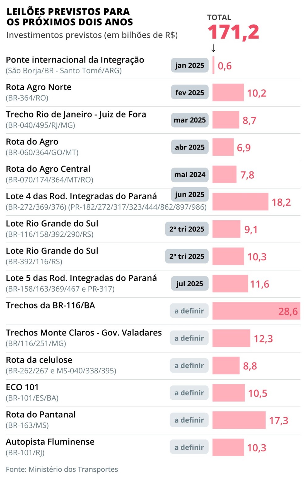 Em breve,será publicado o cronograma oficial de 2025,com 15 leilões previstos. O secretário avalia que o apetite dos investidores segue grande,mesmo com um cenário macroeconômico mais adverso à frente,com perspectivas de juros mais altos.