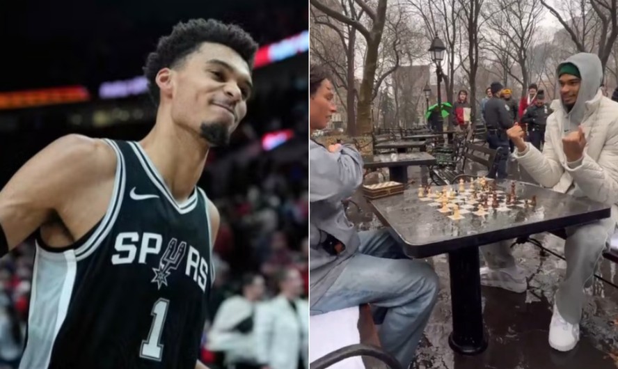 Considerado um dos astros da NBA na atualidade,o jogador de basquete francês Victor Wembanyama,de 20 anos,decidiu se sentar em um dos bancos do Washington Square Park,em Nova York,para jogar xadrez com fãs ao ar livre na manhã deste sábado. O momento foi registrado e publicado nos perfis oficiais da liga nas redes sociais.