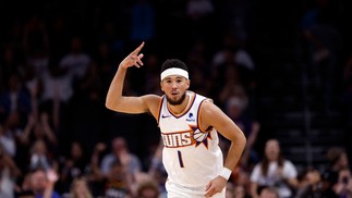 Devin Booker é um dos principais nomes do Phoenix Suns na NBA 2023/24 — Foto: Chris Coduto/AFP