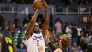 Kawhi Leonard durante jogo pré-temporada,contra o Utah Jazz — Foto: Darryl Oumi/AFP