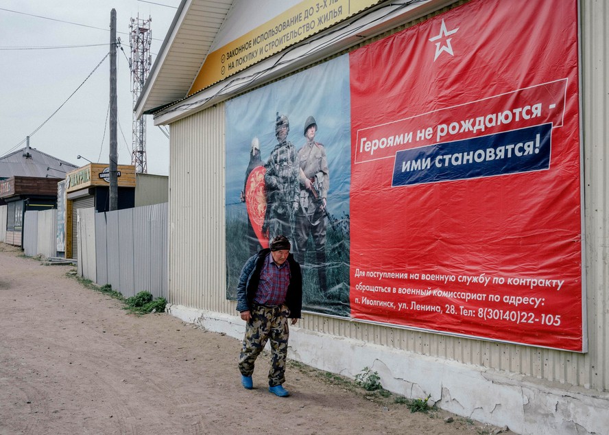 Cartaz de alistamento militar nos arredores de Ulan Ude — Foto: Nanna Heitmann/The New York Times