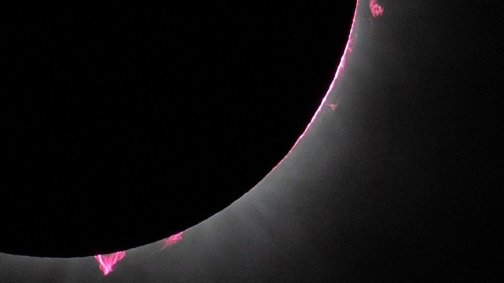 As chamas rosas do Sol durante o eclipse — Foto: NASA/Keegan Barber