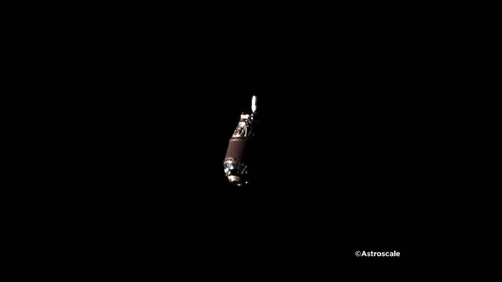 A Astroscale registrou a primeira foto de um pedaço de lixo espacial em alta resolução. A imagem mostra um estágio superior de um foguete japonês,em órbita desde 2009. — Foto: Astroscale