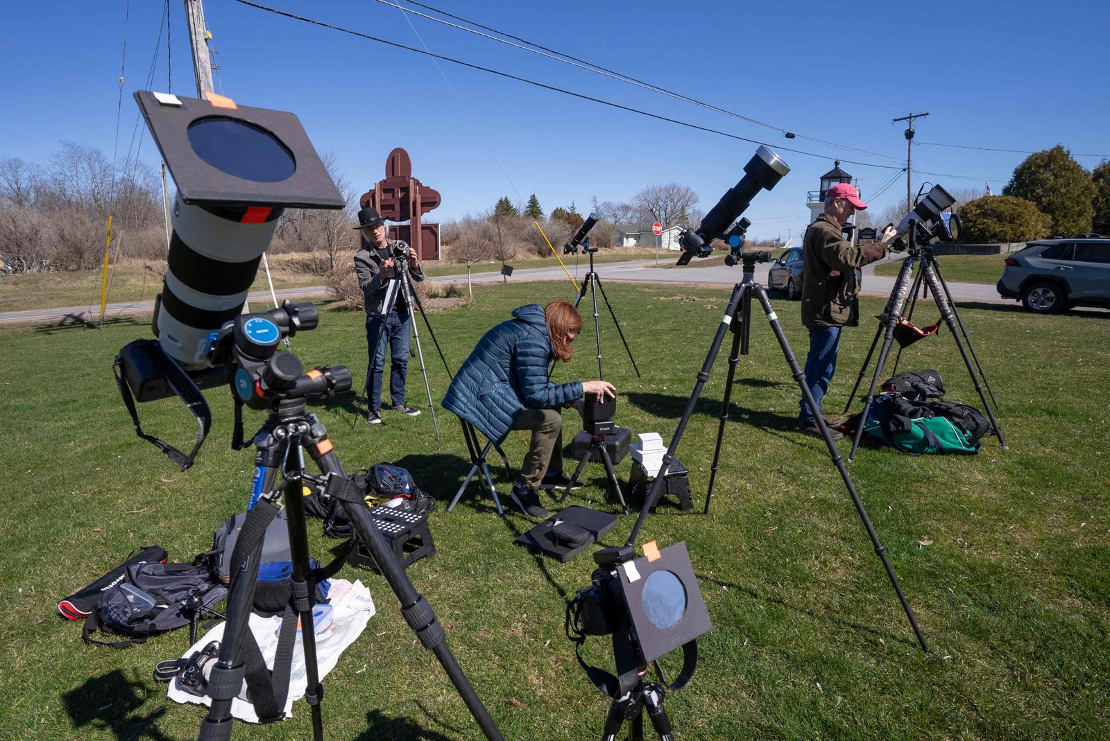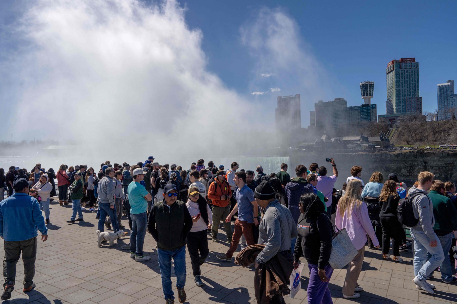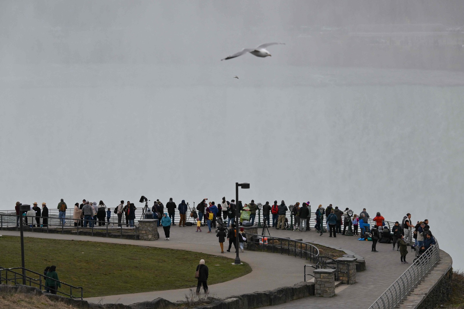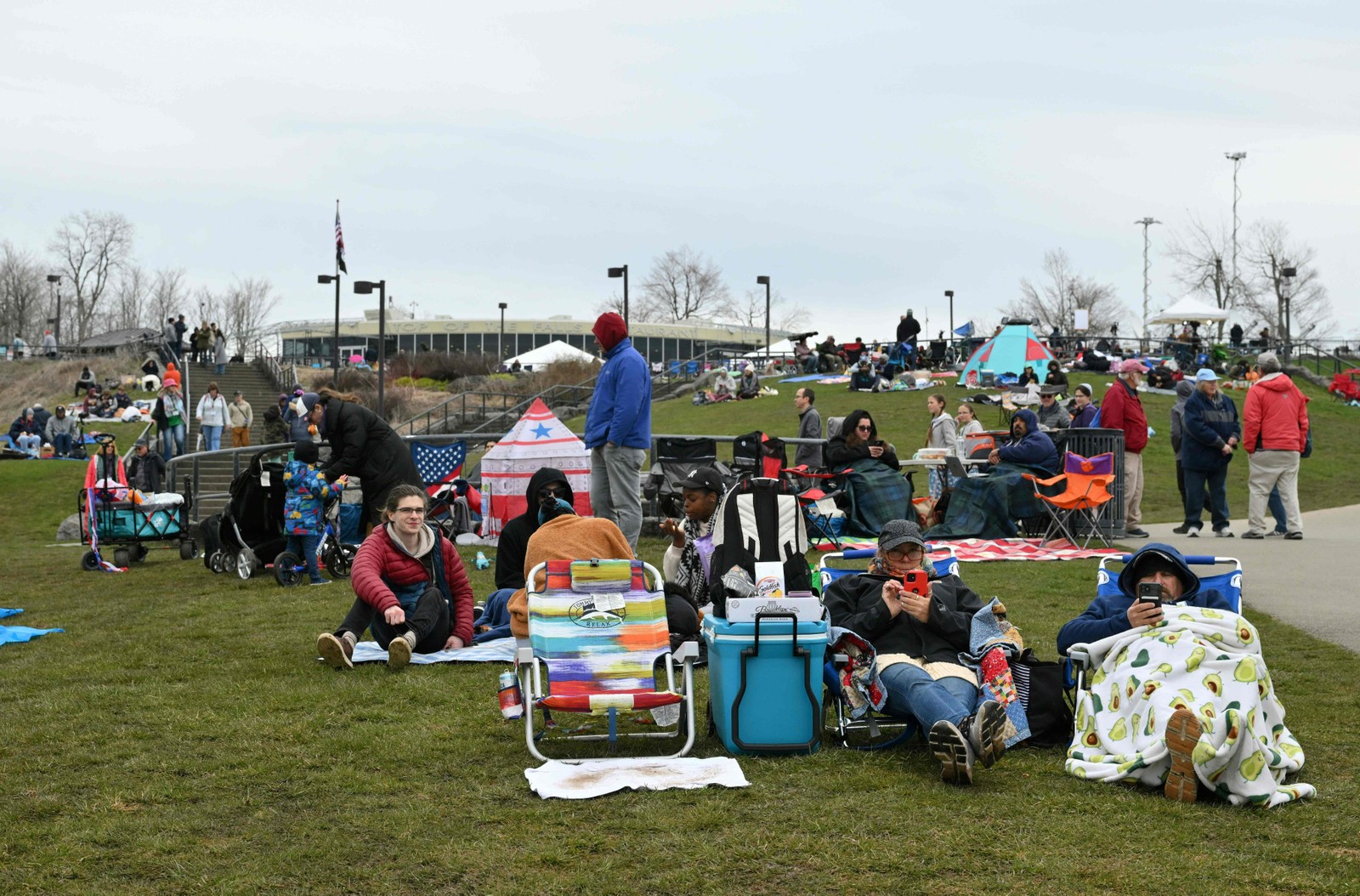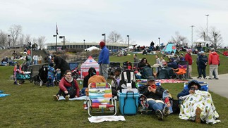 Muitas pessoas estão instaladas no Parque Estadual das Cataratas do Niágara aguardando o eclipse solar. - Foto: Angela Weiss / AFP