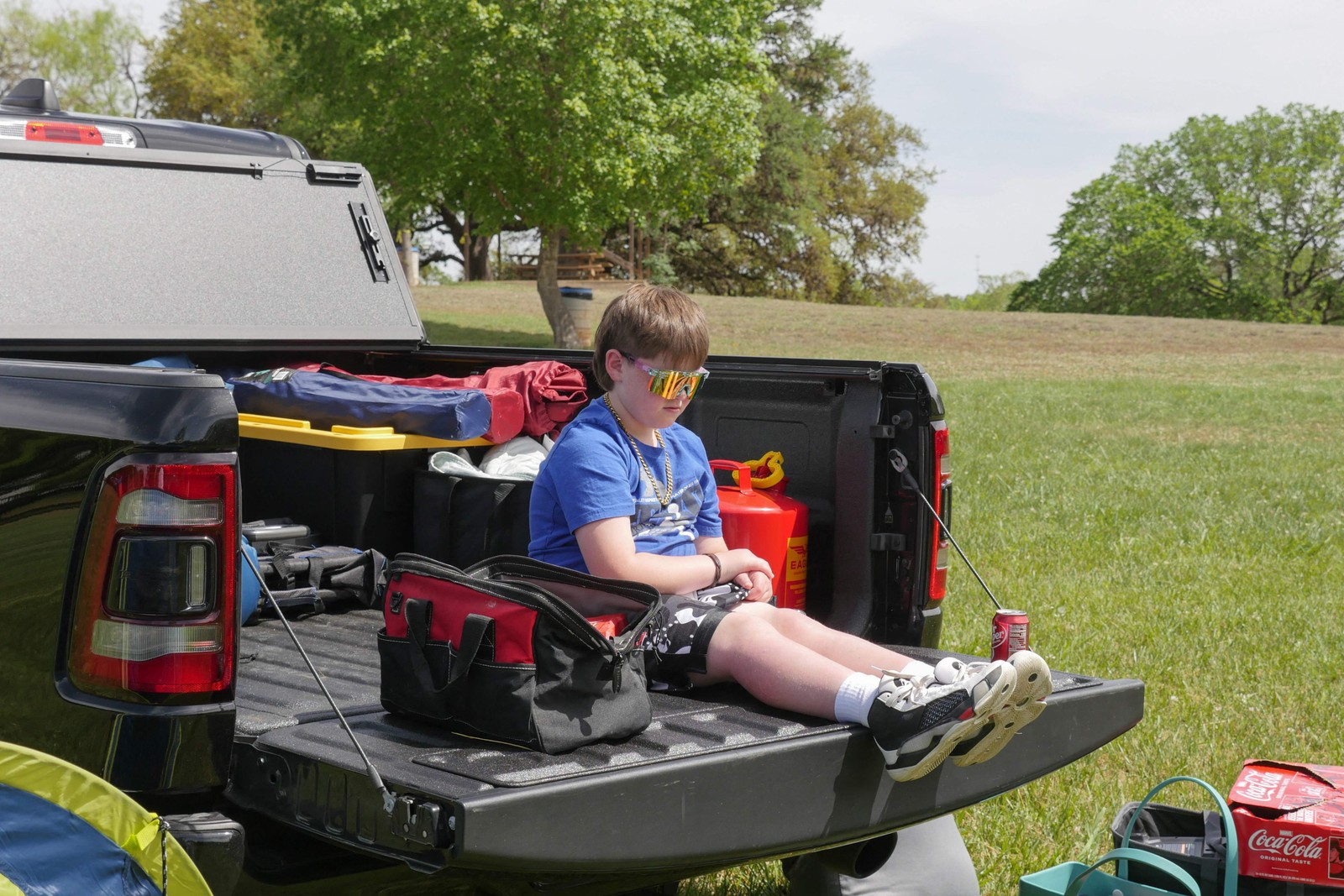 Um menino pratica o uso de seus óculos de eclipse em Stonehenge II antes do eclipse solar total. — Foto: Cécile Clocheret / AFP
