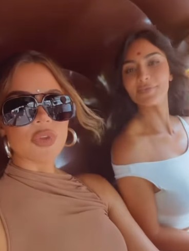 Khloé e Kim Kardashian em Mumbai — Foto: Reprodução/Instagram