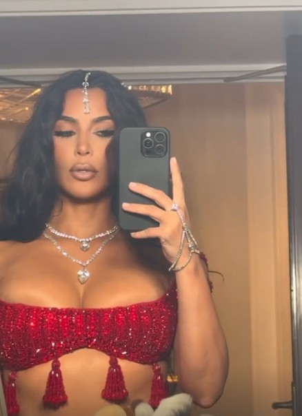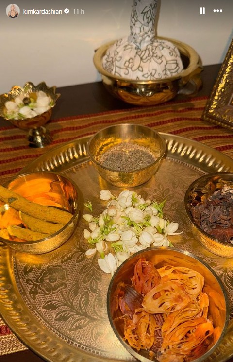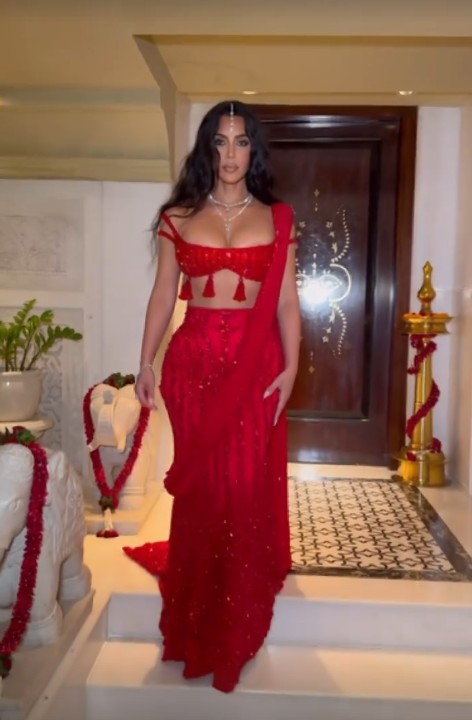 Kim Kardashian exibe look para casamento na Índia — Foto: Instagram