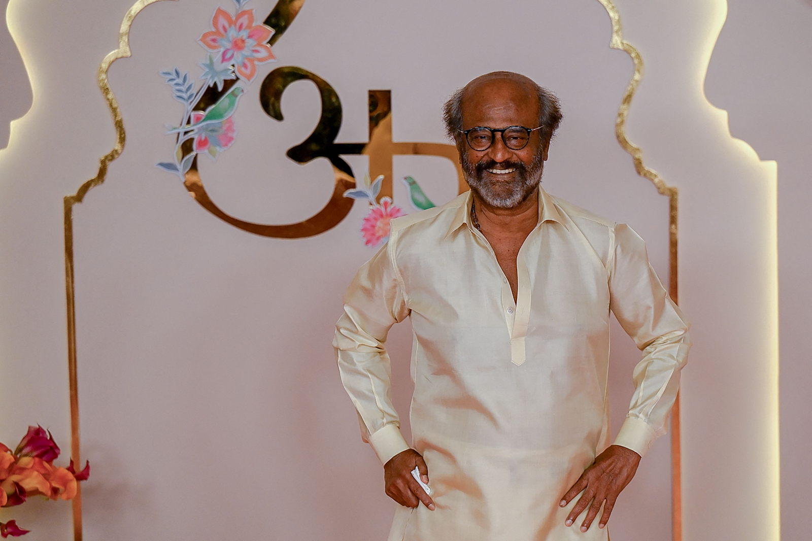 Ator Rajinikanth chega para megacasamento na Índia — Foto: AFP