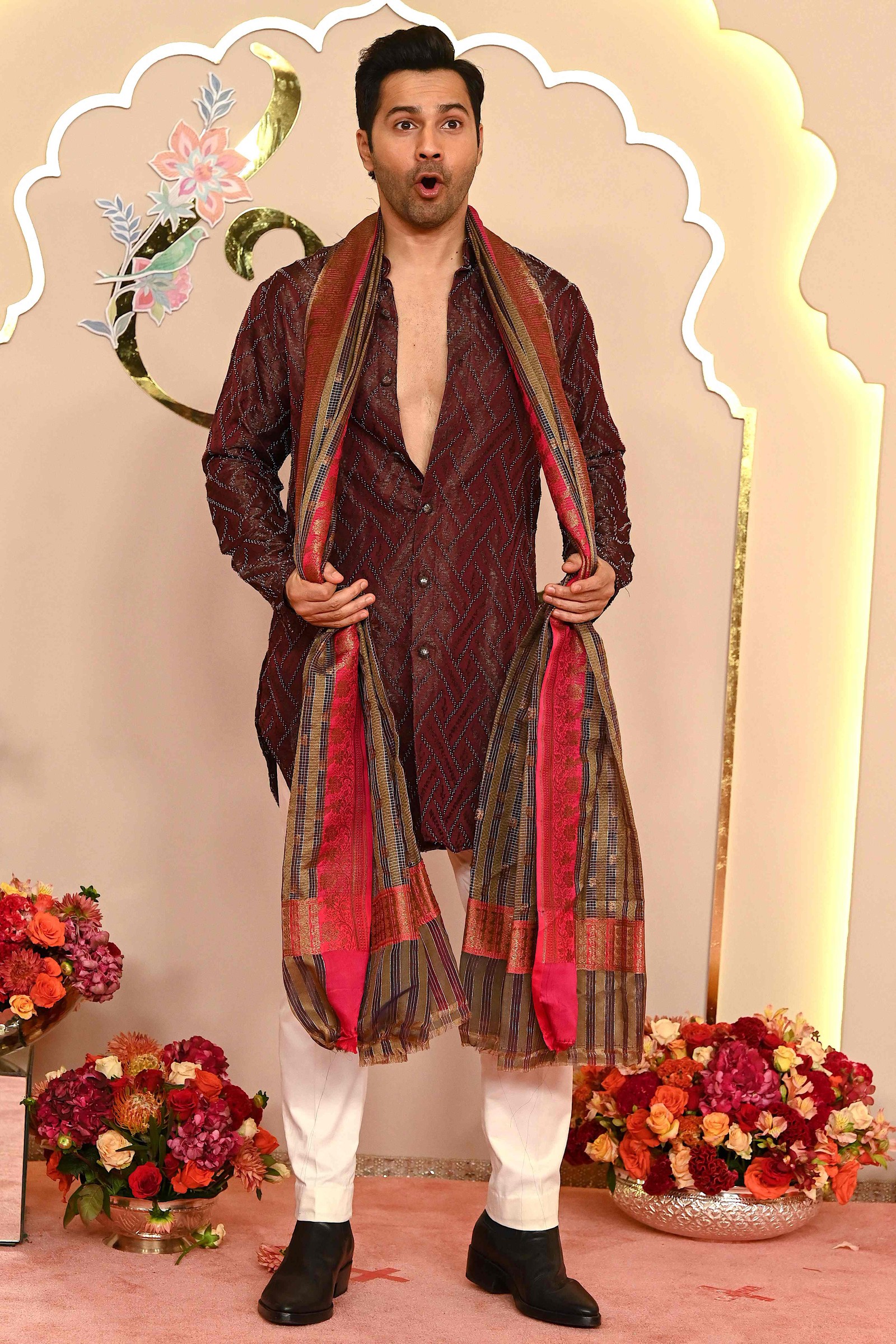 Atores de Bollywood vestidos com trajes tradicionais da Índia no casamento de Anant Ambani e Radhika Merchant — Foto: AFP