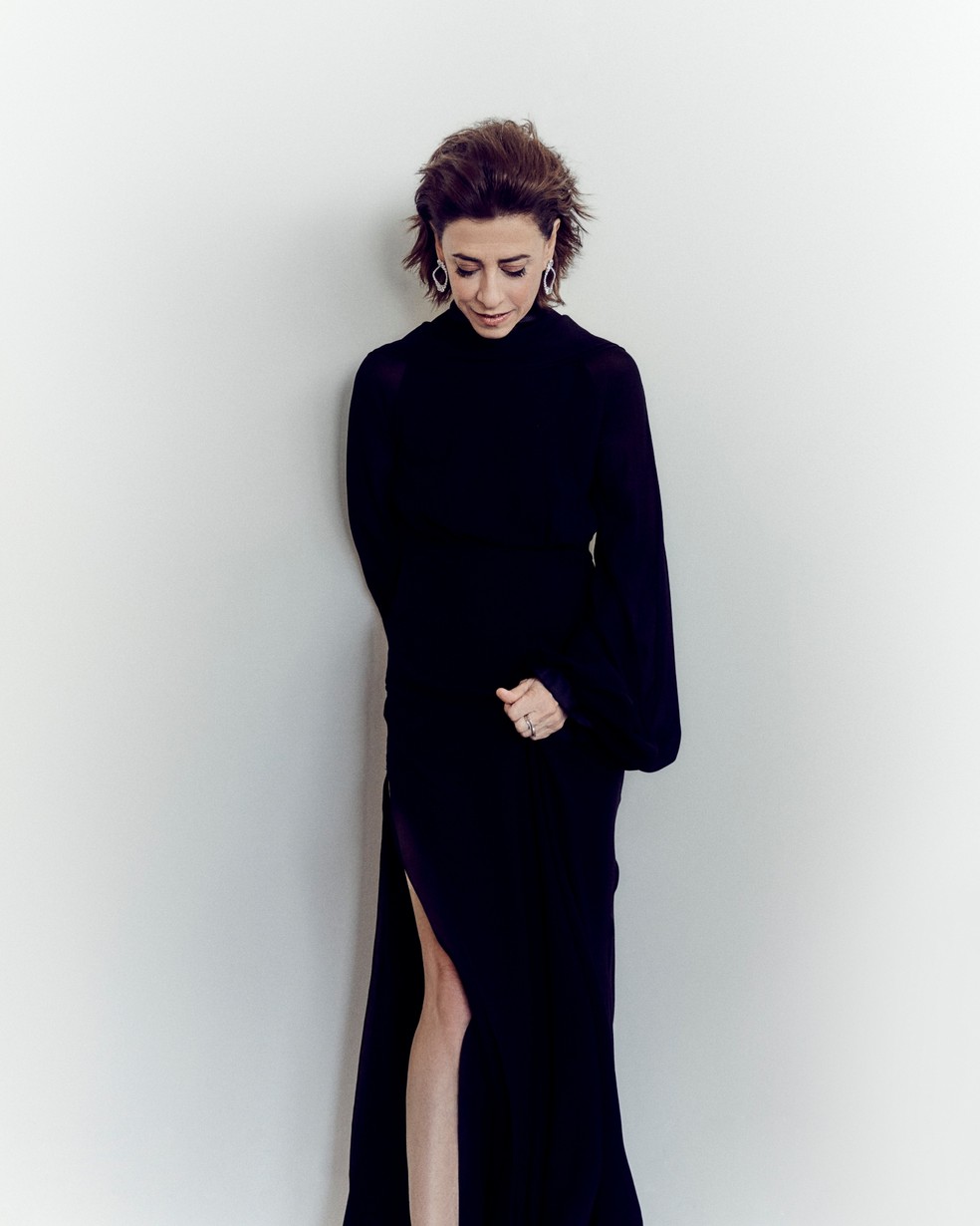 Vestido escolhido por Fernanda Torres é uma peça Olivier Theyskens — Foto: Divulgação Shayan Asgharnia