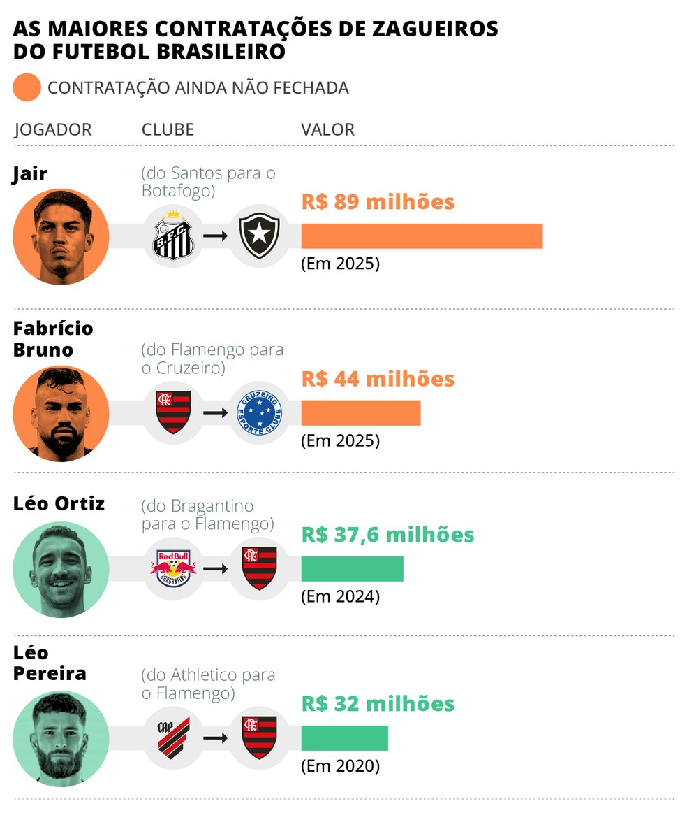 Maiores contratações de zagueiros do futebol brasileiro — Foto: Editoria de Arte