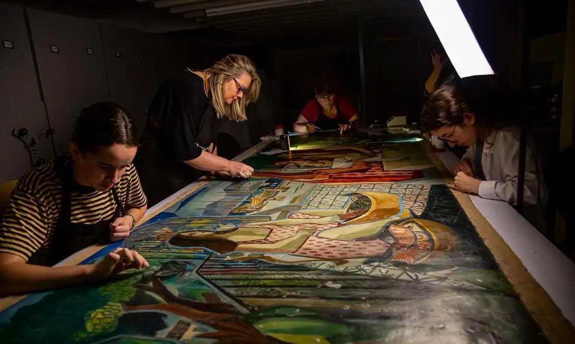 Recuperação de "Galhos e sombras" marcou o processo de restauração das obras depredadas por golpistas — Foto: Mariana Alves/ Iphan