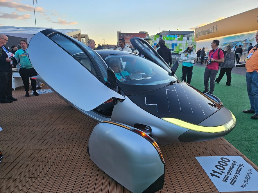 Carro elétrico movido a energia solar: uma das novidades apresentadas na CES 2025 — Foto: Bruno Rosa