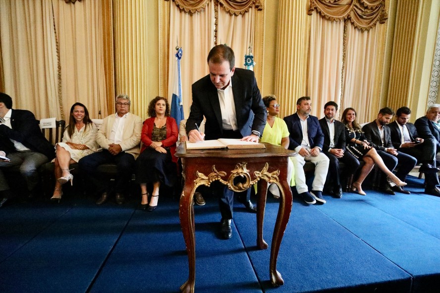 O prefeito Eduardo Paes dá posse aos novos dirigentes e secretários da Prefeitura do Rio — Foto: Beth Santos / Divulgação Prefeitura